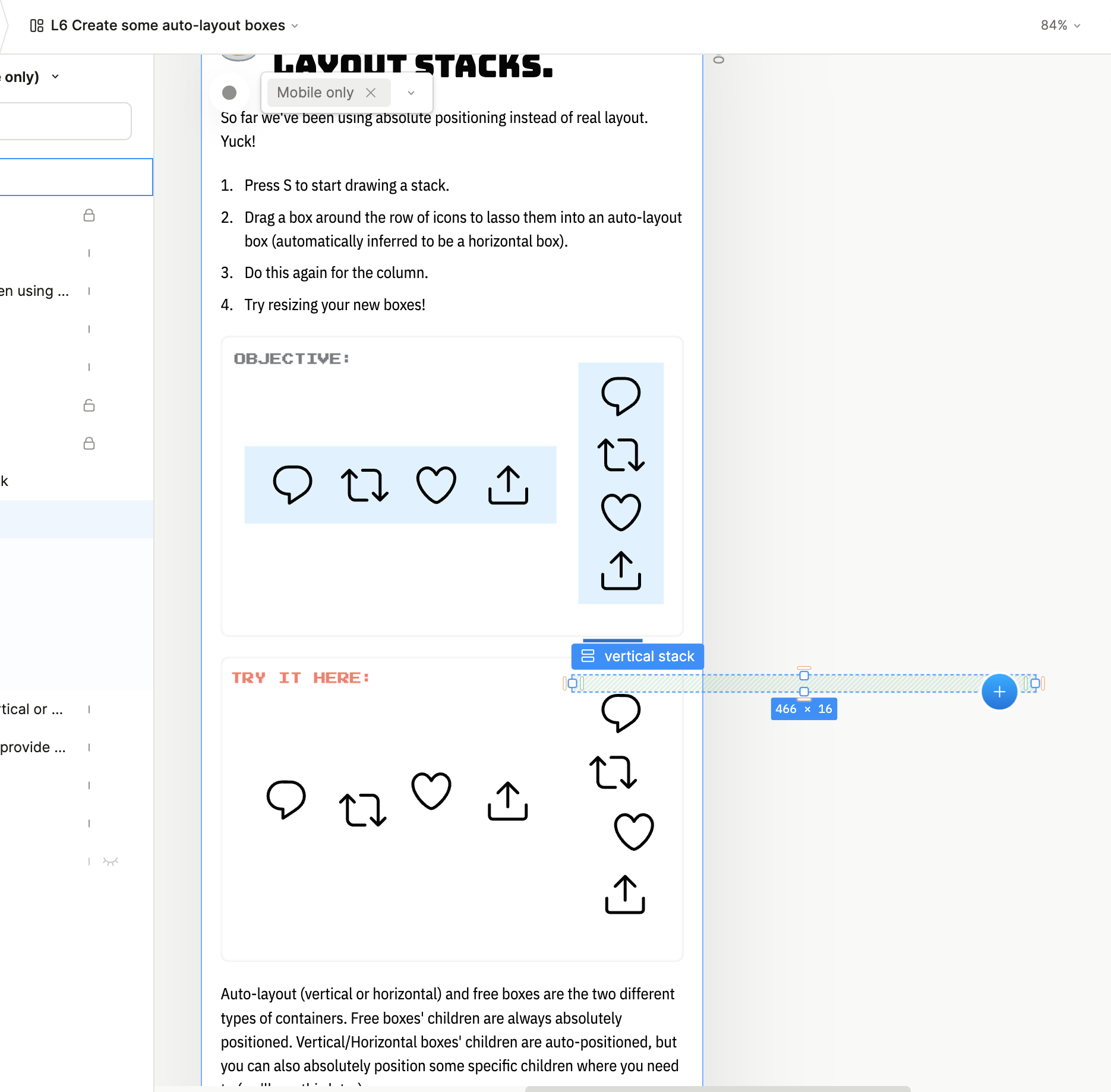 Overall enjoying plasmic but seems to notice some bugs in the plasmic levels tutorials as mentioned above and again in Advance L6 where the stacks don’t work as they’re supposed to. Dragged around the icons but still show up as above. Resized to fit and checked hierarchy they are inside and did layout center on properties panel but nothing is happening. Not sure if im missing an instruction or the feature isn’t fully working.
