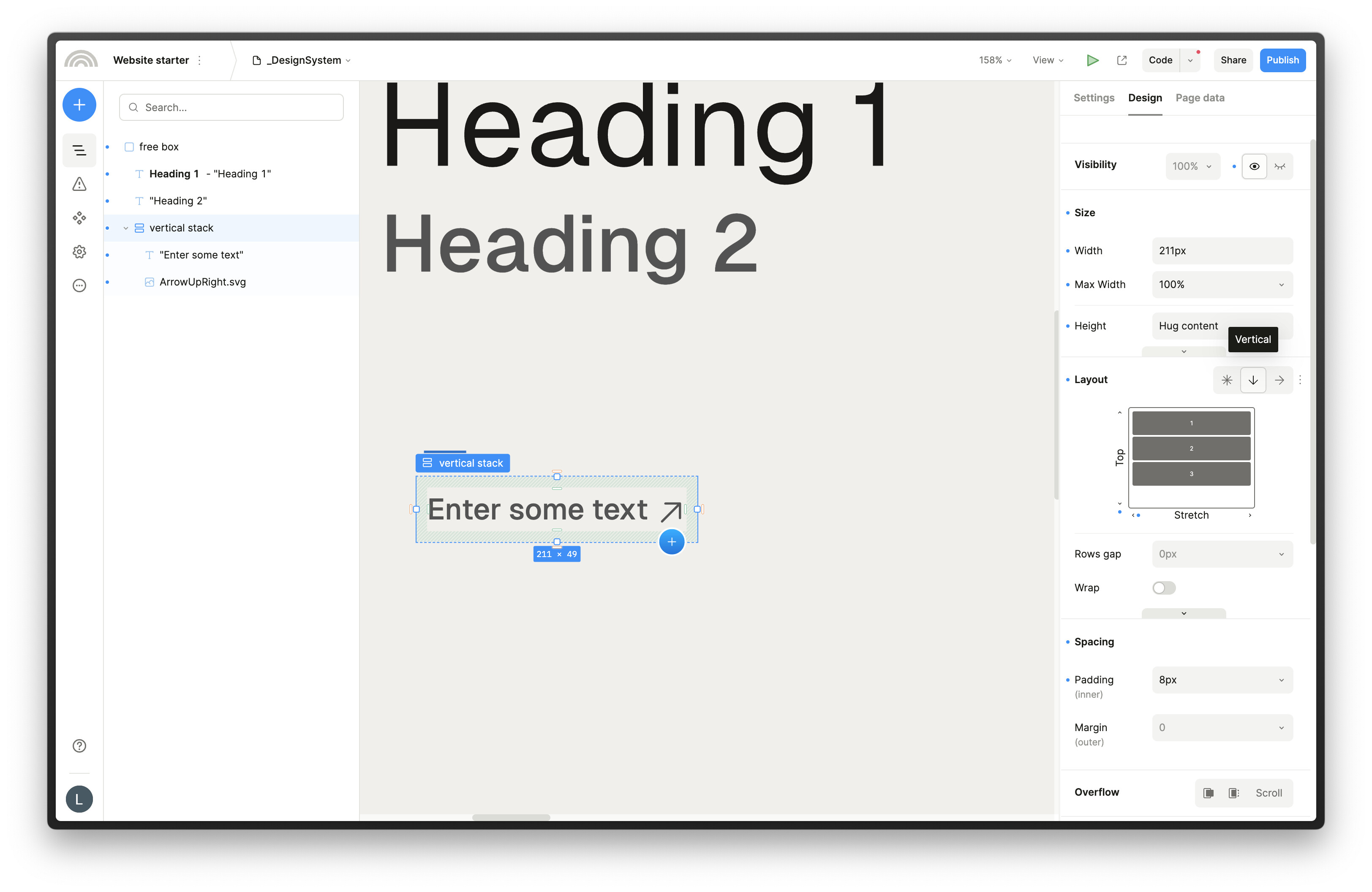 Tried to switch to vertical stack and it’s still not doing anything. Any way to fix this since I need it for my button component