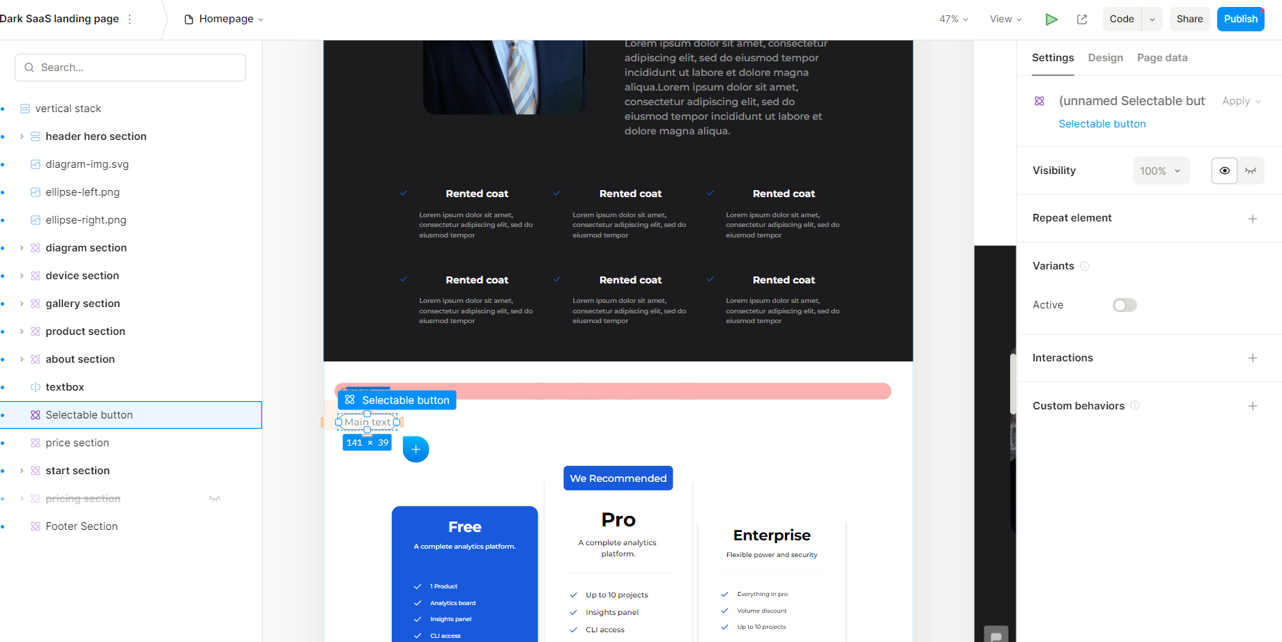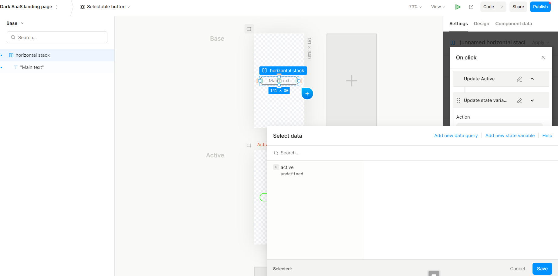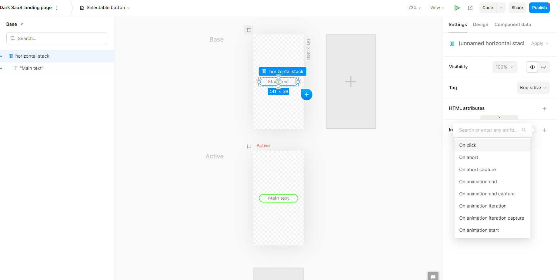 However, you can right click the interaction and link it to a prop on the selectable box. That means any instance of selectable box can now specify an interaction (from outside the component).