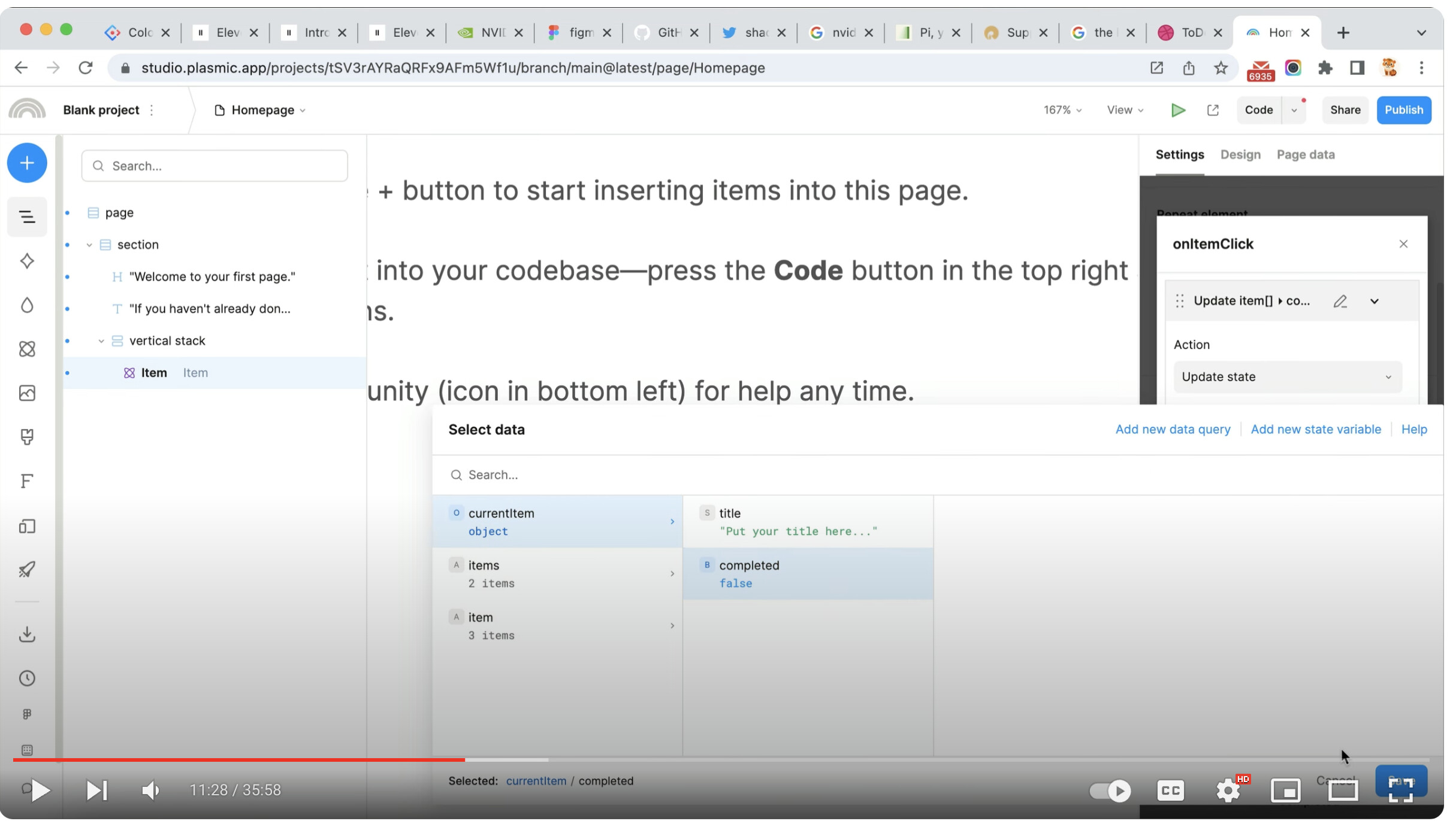 I am back to doing the tutorial and I see the onItemClick; that isn’t the problem … just when I go to set the variable I am not seeing “currentItem” to then go in and select the completed field.
