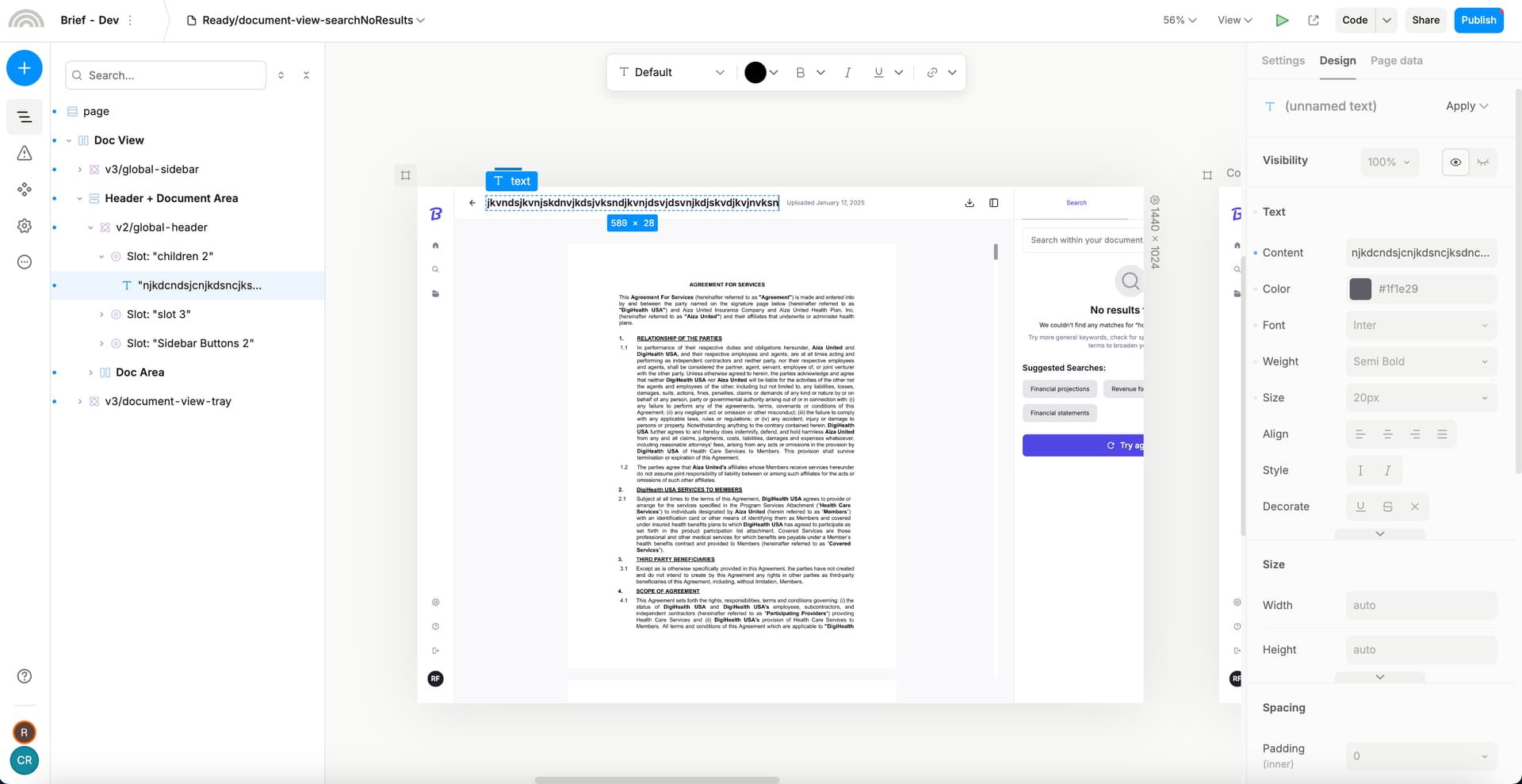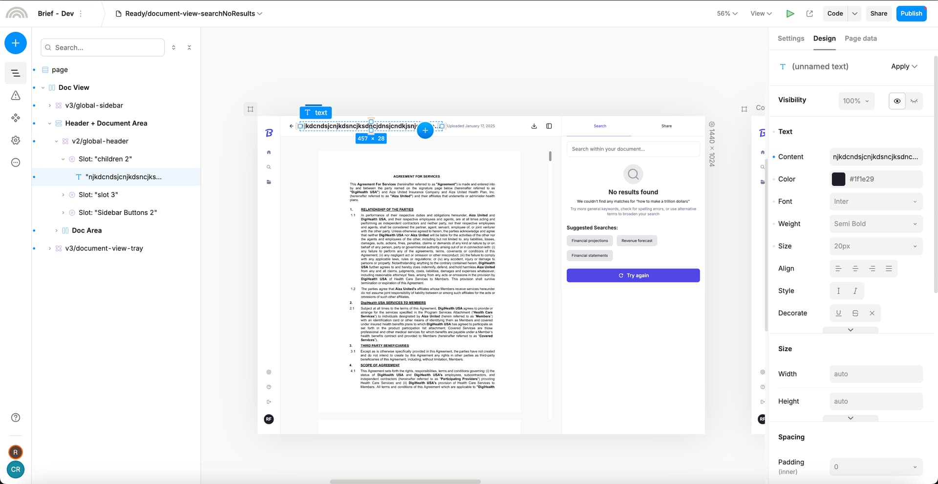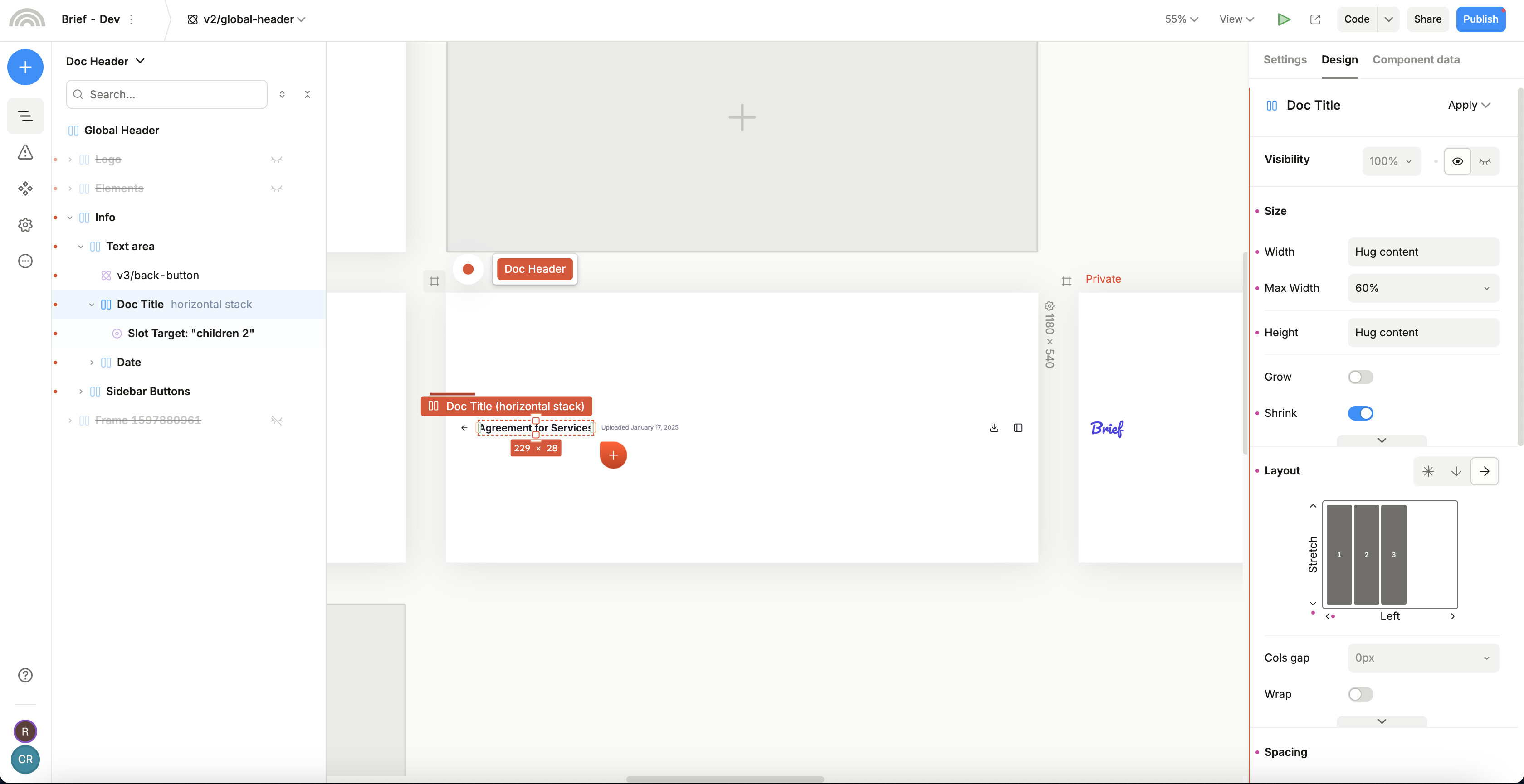 I’m trying to set up a document header that contains a horizontal stack for the title text, along with other elements. I’ve applied an ellipsis rule to overflowing text within the horizontal stack by setting a max width of 60%, which works. However, when testing an edge case of a long title, problems arise. The text will reach a pixel width of 457px, and if I continue typing it’ll remain at 457px even though I’m adding more characters. Then all of a sudden it begins pushing the bounds of my screen to the right. I’m wondering why this is, and have attached images to showcase this: