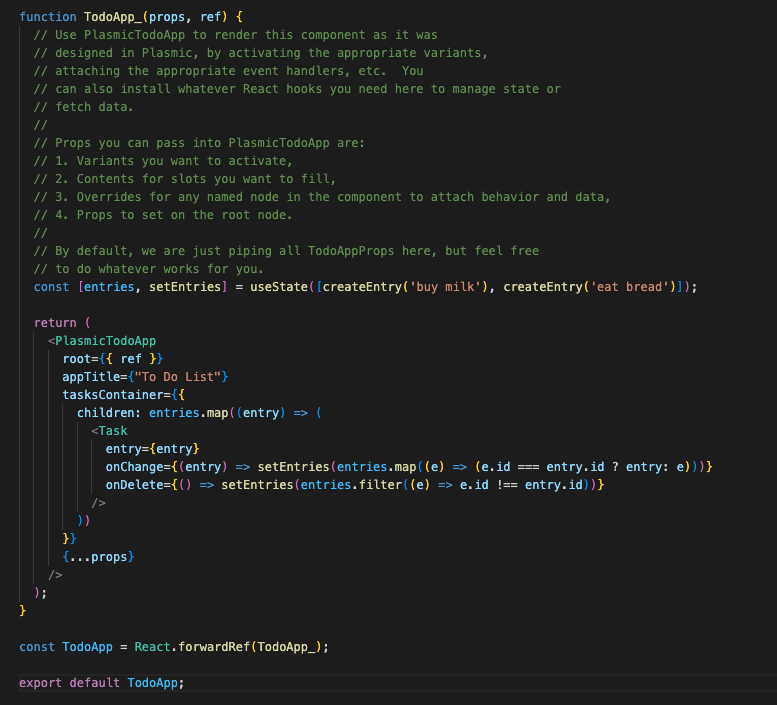 Hope it’s not a noob question but I’m learning Plasmic by doing the ToDoMVP codegen tutorial. In the documentation the “TodoApp” component should look something like the first picture.