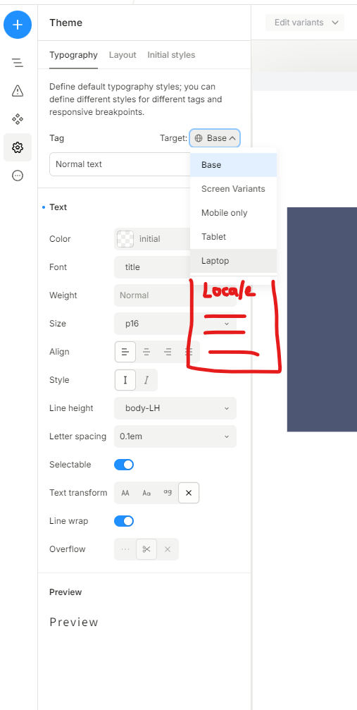 Even better might be the ability to directly change overall typography style for global variant-declared locales!