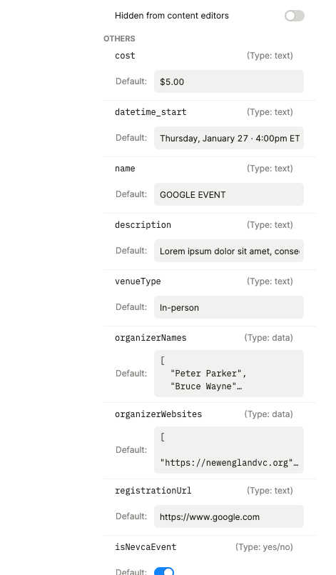 In plasmic studio we define the props with dummy values so that we can design everything around real-looking content.