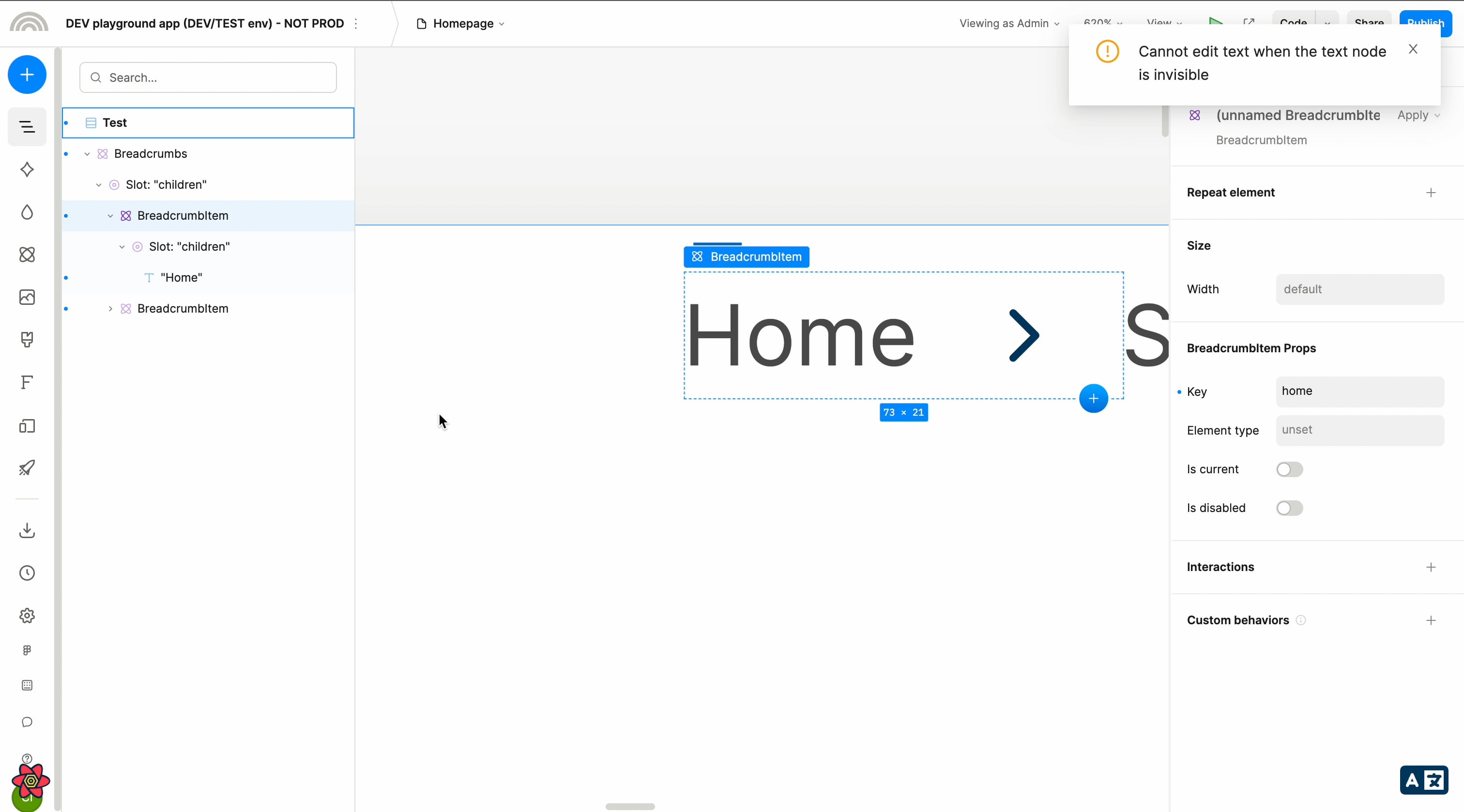 When using a custom component, I can’t seem to set any text content (dynamic text is allowed, however) - see video below: