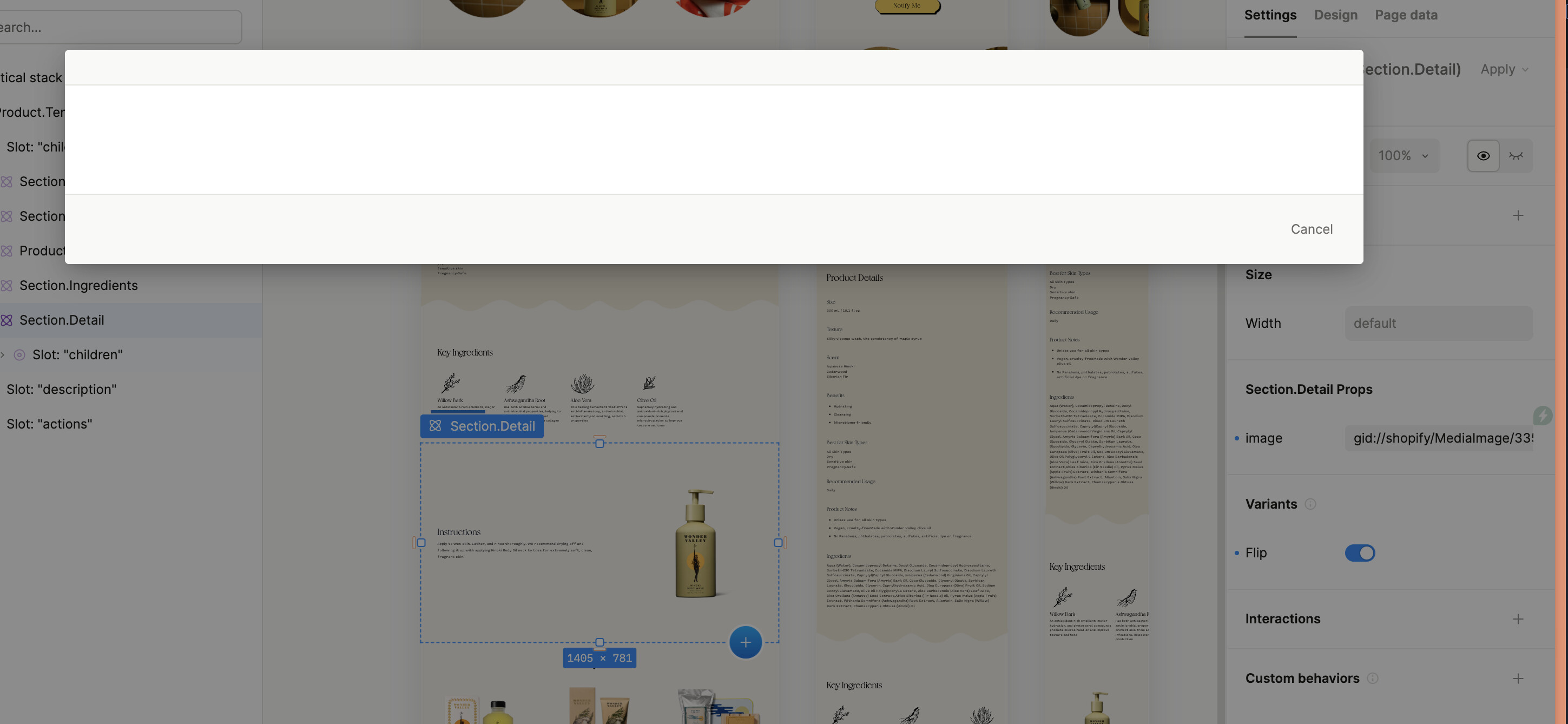 I’m having an issue where I can’t select an image for an exposed prop. It works fine inside the component, but on the product page it shows empty - like the context isn’t being passed @yang @chungwu